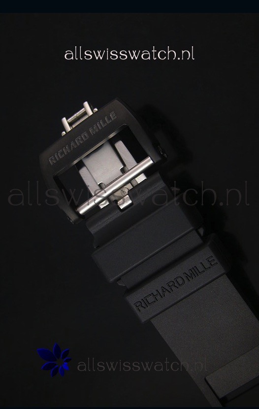 Genuine Black Dust Repellent Black Rubber Strap with Folding Clasp complete with Richard Mille Markings an Engravings