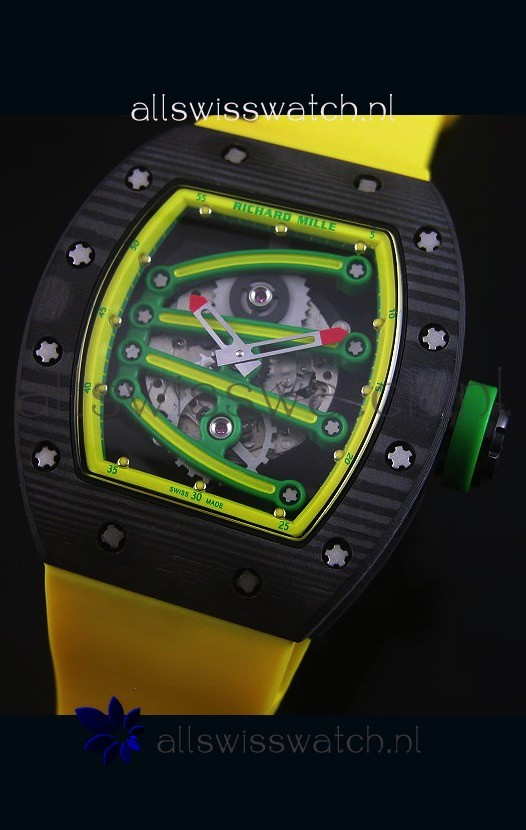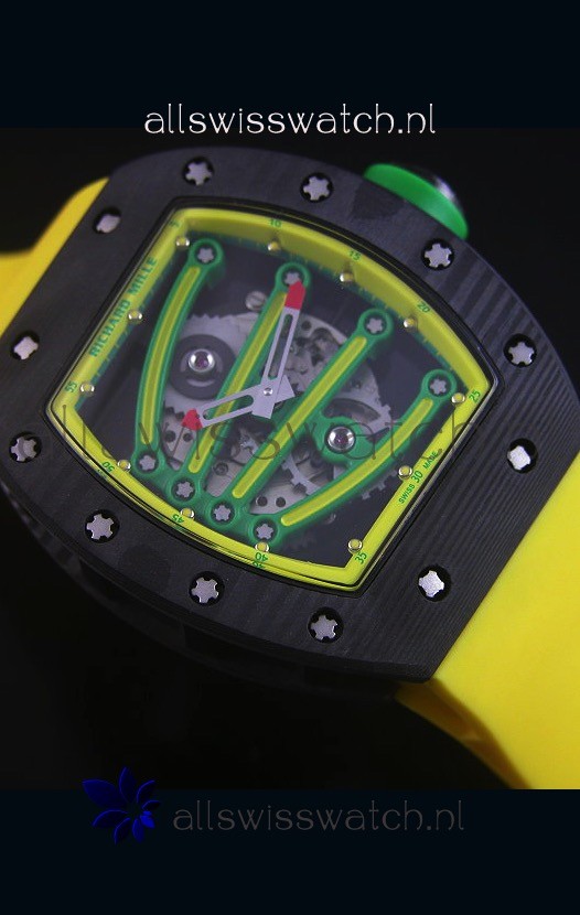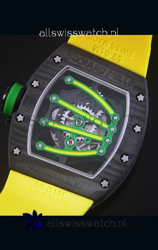 You're reviewing: Richard Mille RM059 Yohan Blake Forged Carbon Case Swiss Replica Watch in Yellow Bezel