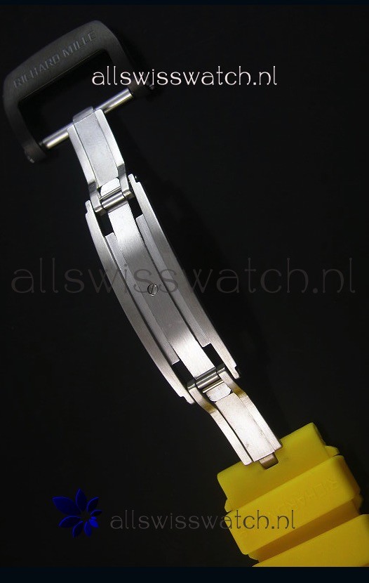 Genuine Yellow Dust Repellent Black Rubber Strap with Folding Clasp complete with Richard Mille Markings an Engravings