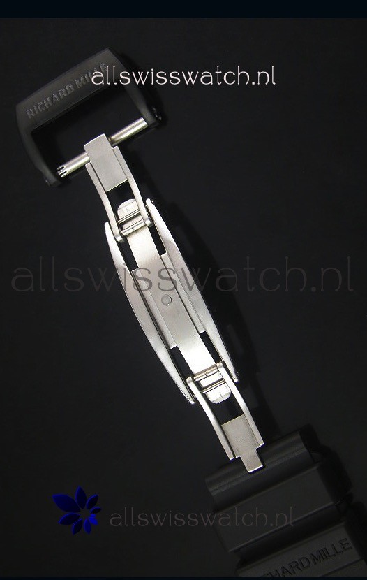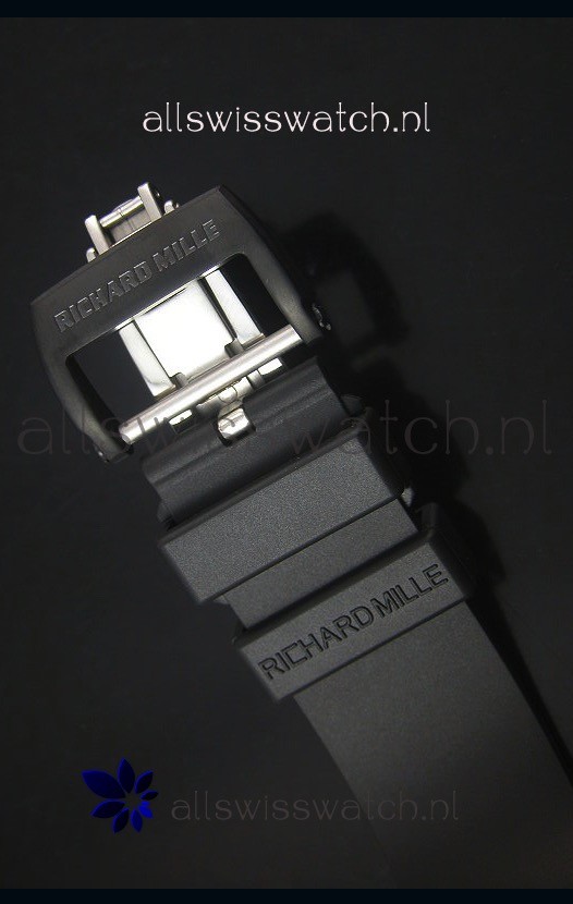 Genuine Clear Dust Repellent Black Rubber Strap with Folding Clasp complete with Richard Mille Markings an Engravings