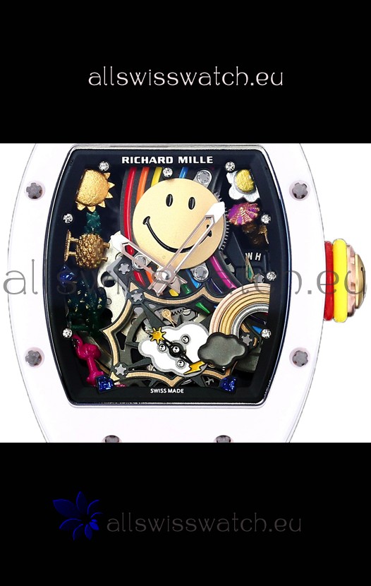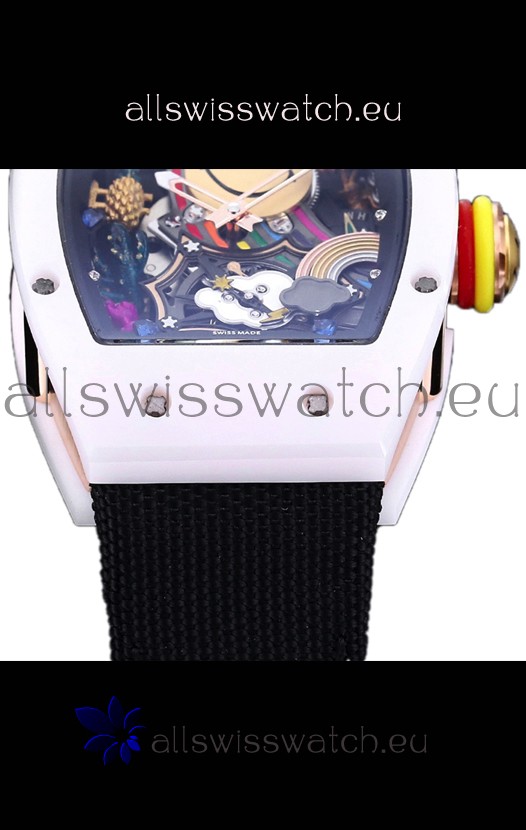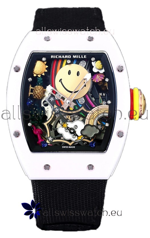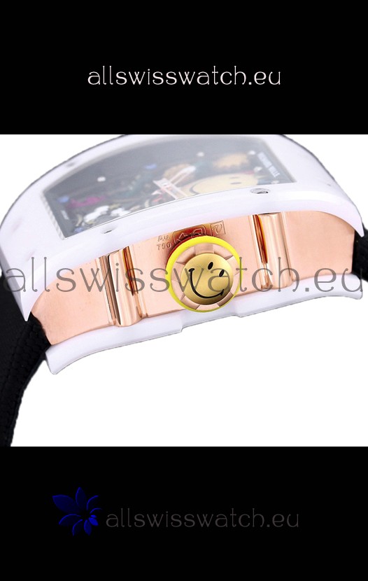 Richard Mille RM088 Smiley Tourbillon White Ceramic Casing Black Nylon Strap Replica Watch