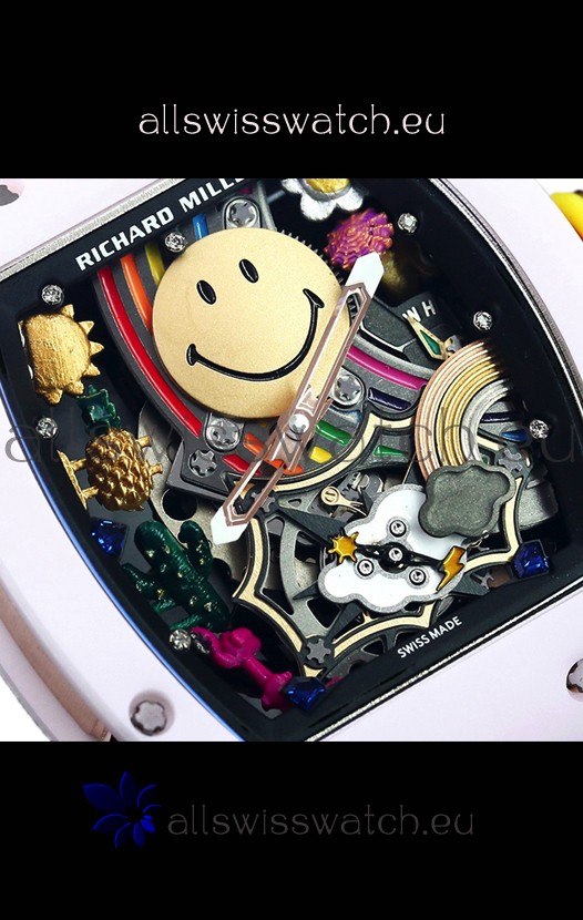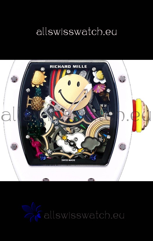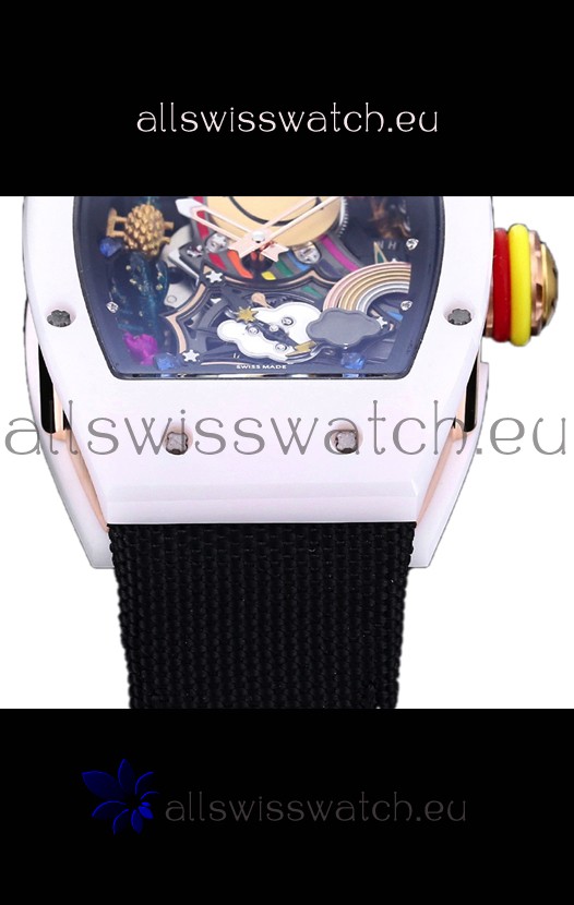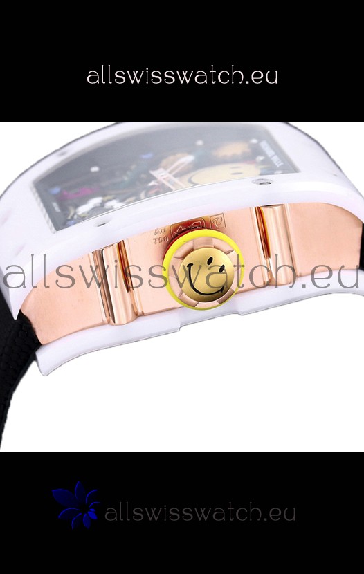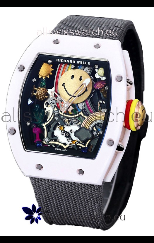 Richard Mille RM088 Smiley Tourbillon White Ceramic Casing Grey Nylon Strap Replica Watch