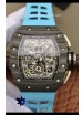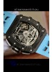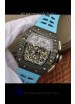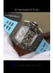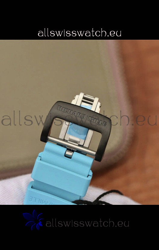 Blue Vented Rubber Strap with Brushed Steel Folding Clasp complete with Richard Mille Markings and Engravings