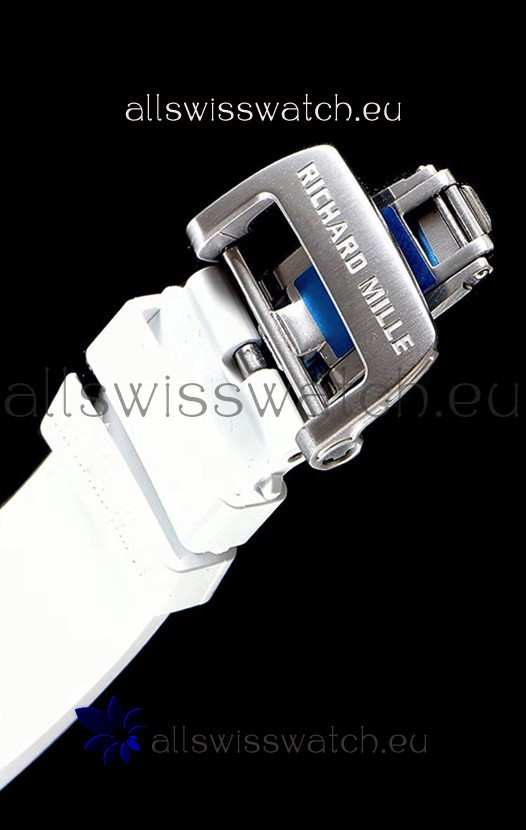 White Vented Rubber Strap with Stainless Steel Folding Clasp complete with Richard Mille Markings and Engravings