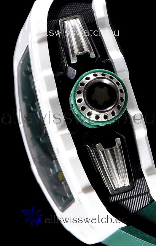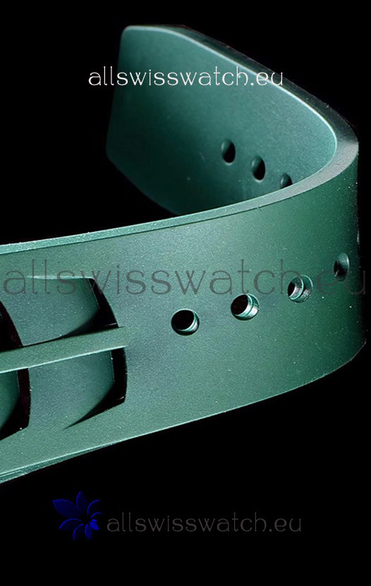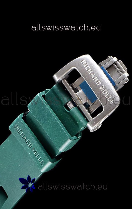 Green Vented Rubber Strap with Stainless Steel Folding Clasp complete with Richard Mille Markings and Engravings