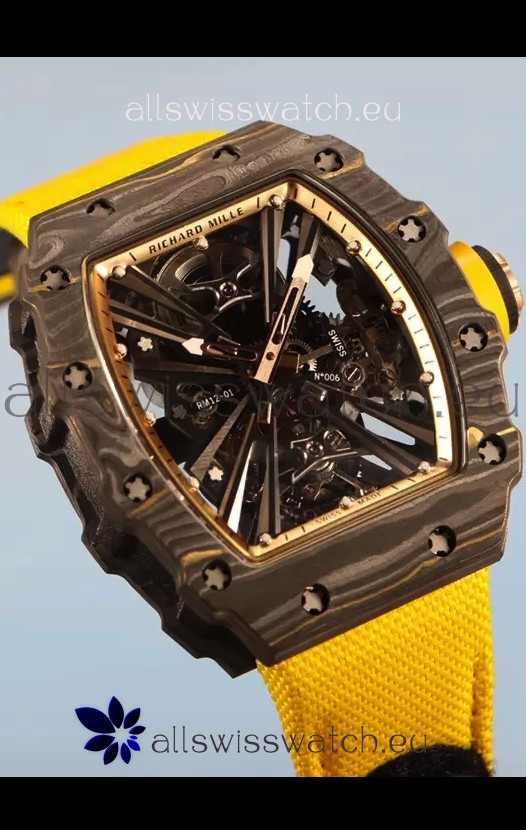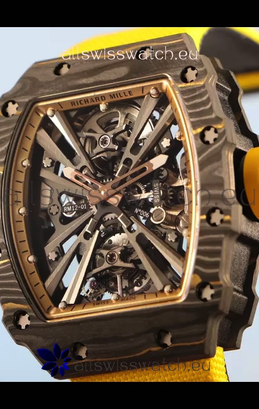 Richard Mille RM12-01 Carbon Fiber Case Genuine Tourbillon Movement 1:1 Mirror Replica Watch