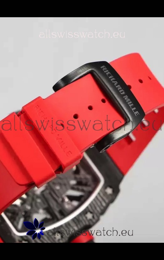 Red Dust Proof Rubber Strap with PVD Coated Buckle complete with Richard Mille Markings/Engravings