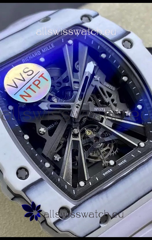 Richard Mille RM12-01 White Carbon Fiber Case Genuine Tourbillon Movement 1:1 Mirror Replica Watch