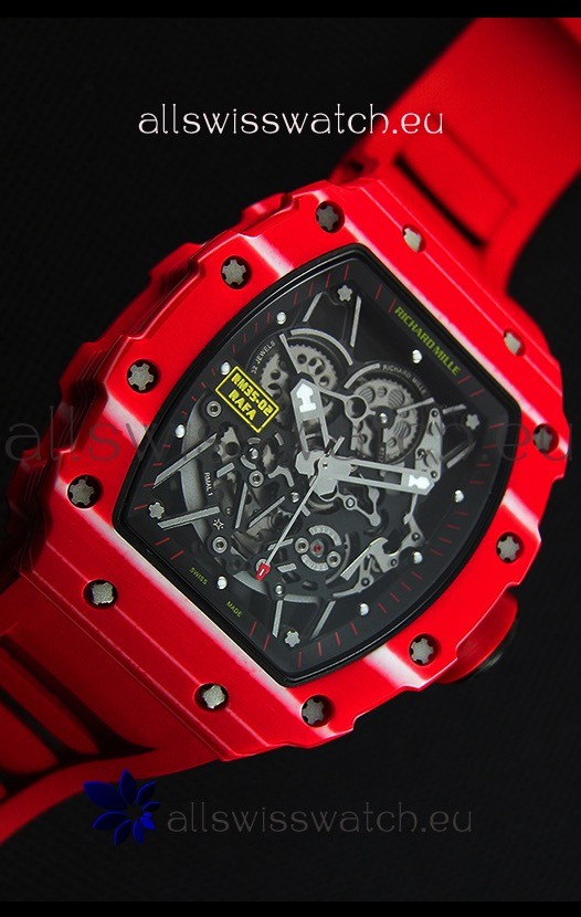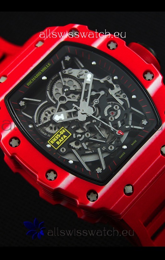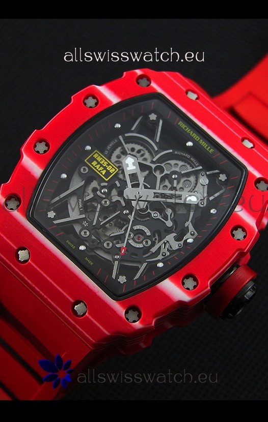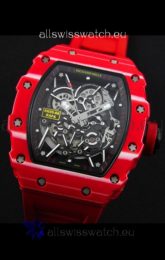 Richard Mille RM35-02 One Piece Red Forged Carbon Case Watch in Red Strap