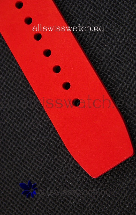 Red Vented Rubber Strap with Folding Clasp with DLC Coating