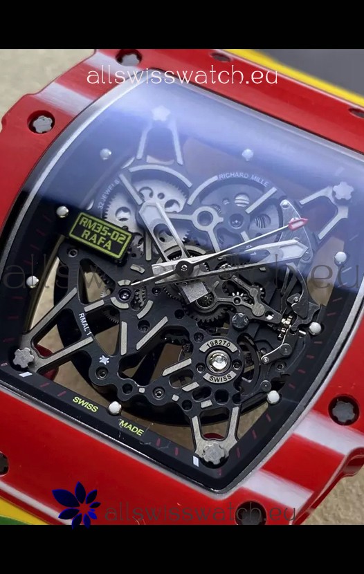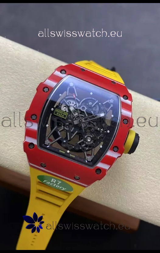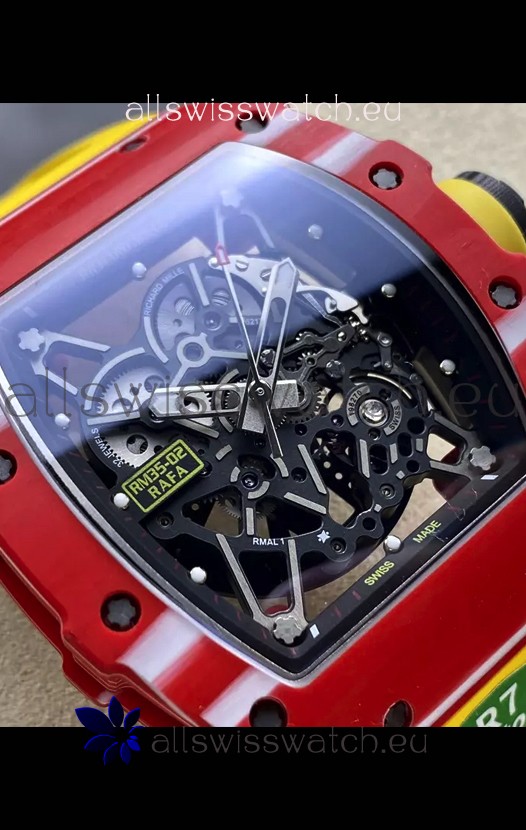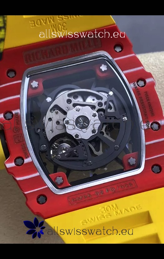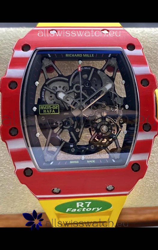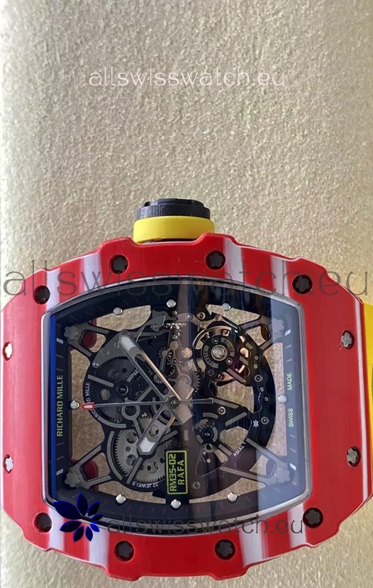 Richard Mille RM35-02 Rafael Nadal Red Carbon Yellow Strap with Genuine Tourbillon Super Clone Watch