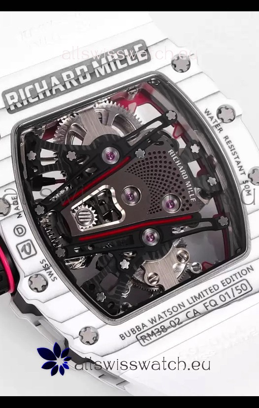 Richard Mille RM38-02 White Carbon Bubba Watson White Rubber Tourbillon Movement 1:1 Mirror Replica