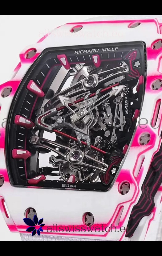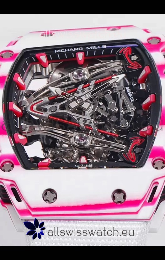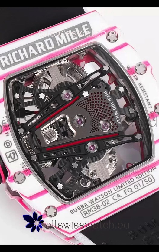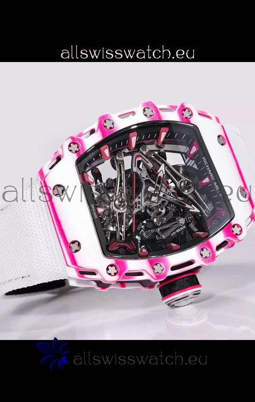 Richard Mille RM38-02 White/Pink Carbon Bubba Watson White Nylon Tourbillon Movement 1:1 Mirror Replica
