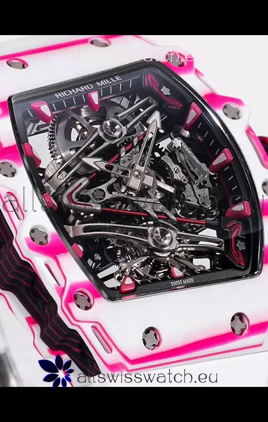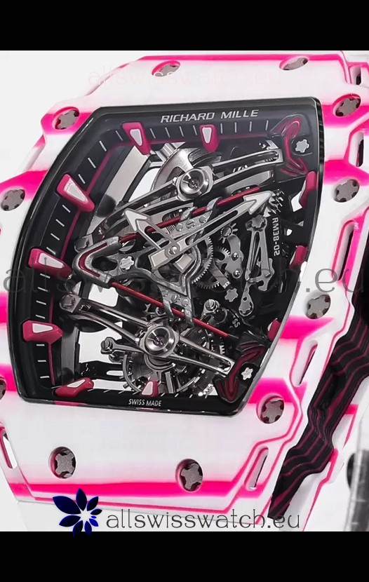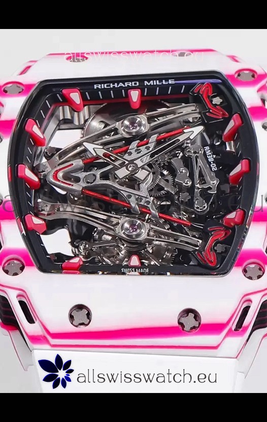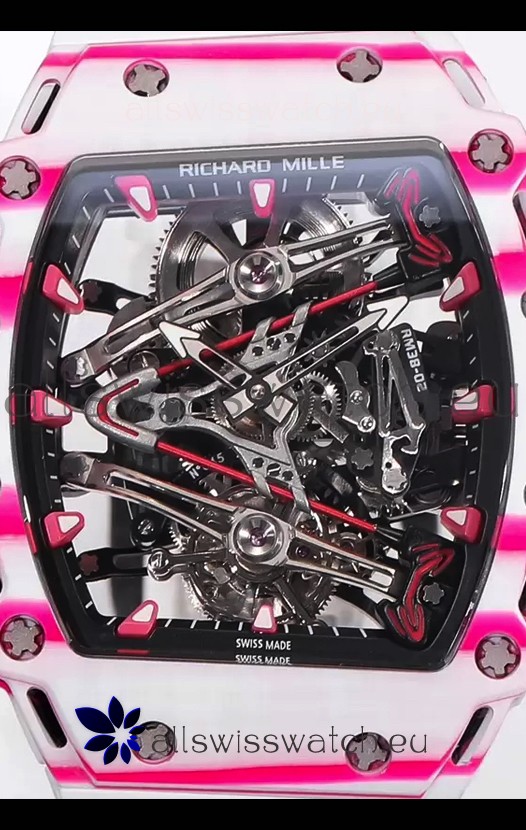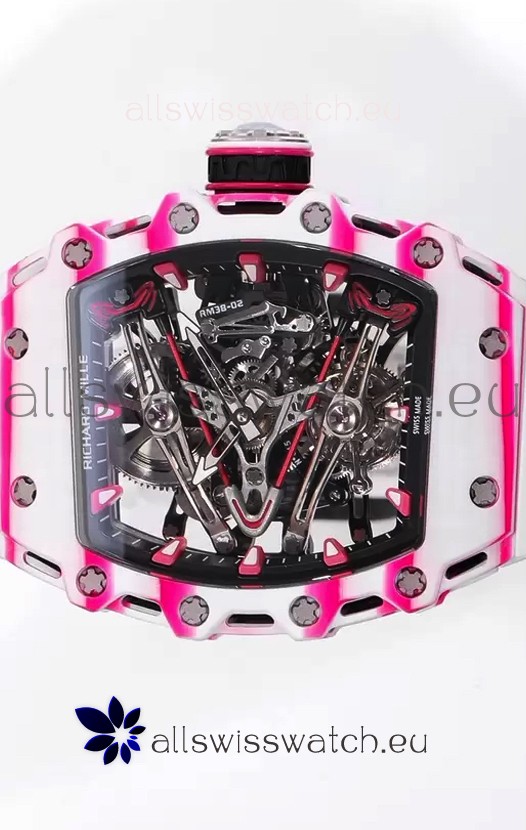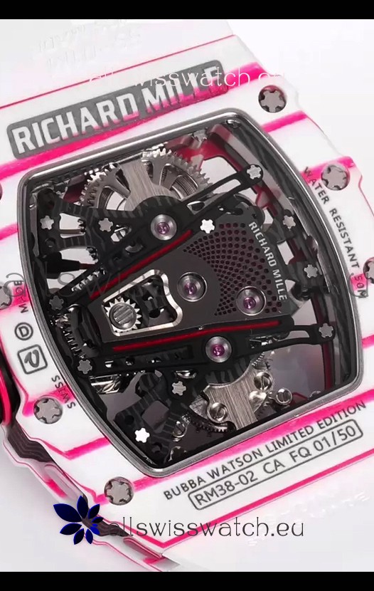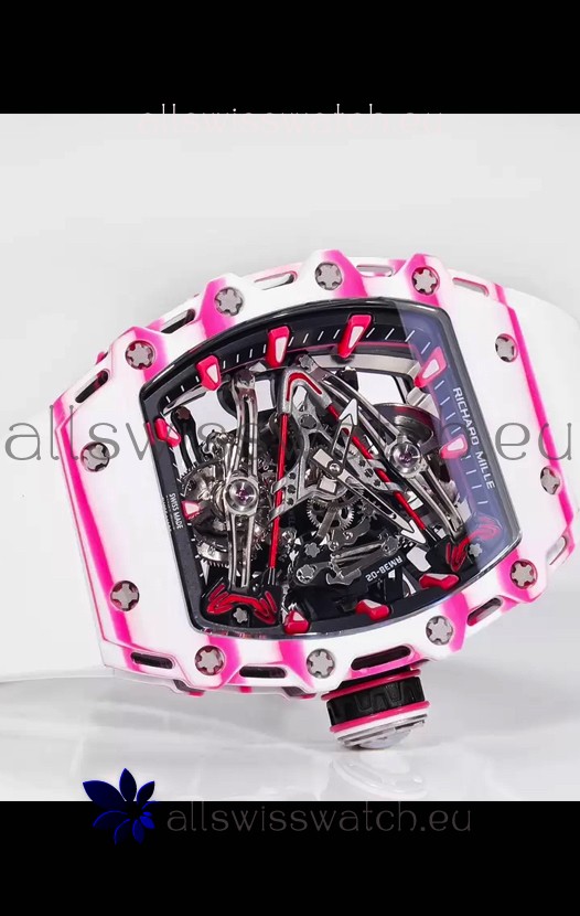Richard Mille RM38-02 White/Pink Carbon Bubba Watson White Rubber Tourbillon Movement 1:1 Mirror Replica