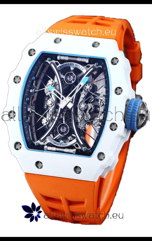 Richard Mille RM53-01 Pablo Mac Donough White TPT CASE White Orange Nylon Swiss Replica Watch
