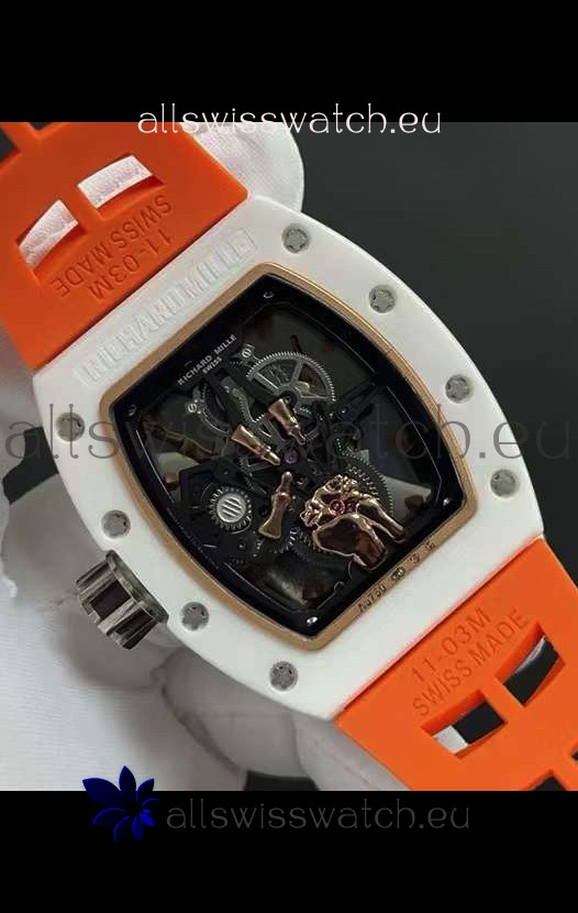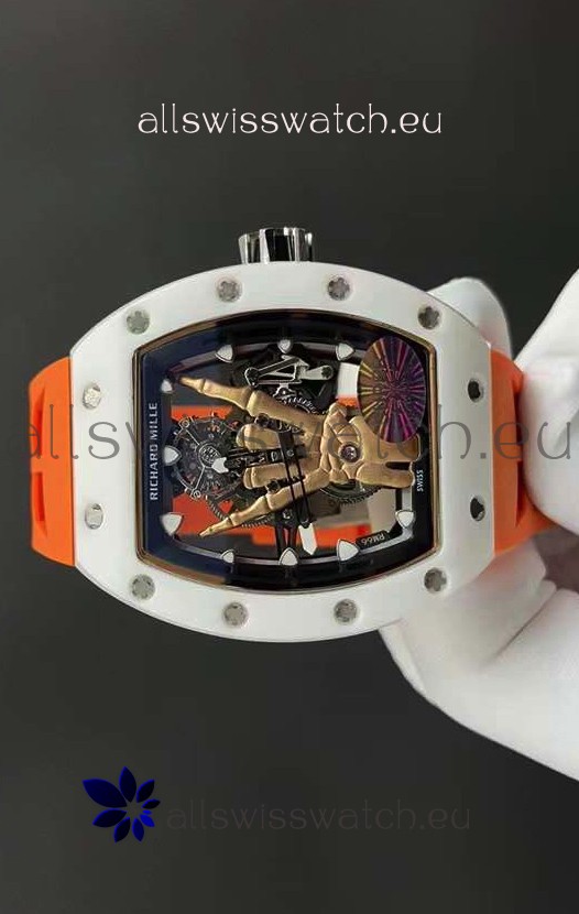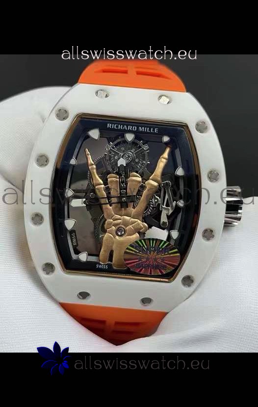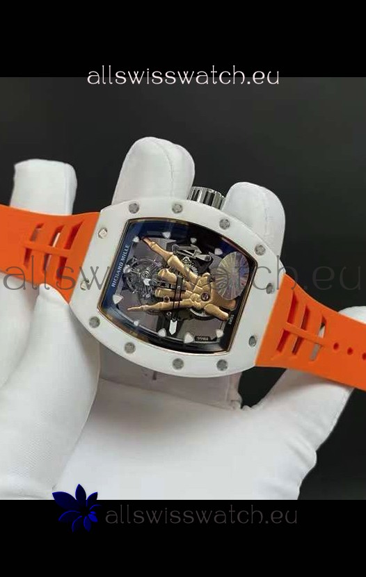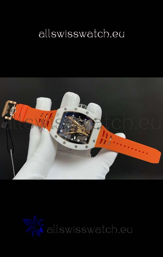 Richard Mille RM66 Flying Genuine Tourbillon White Ceramic Orange Strap Superclone Replica Watch