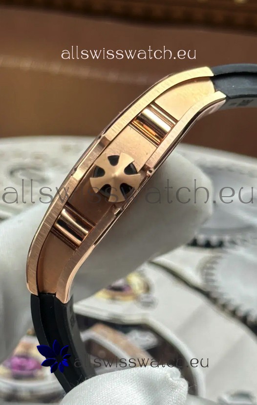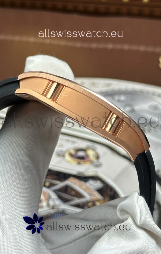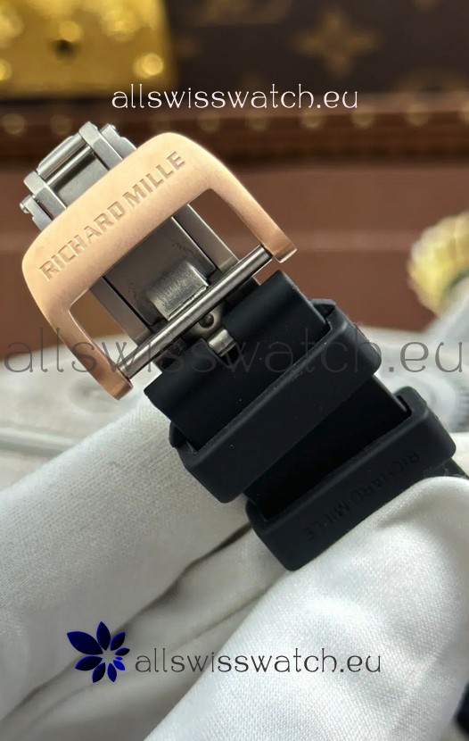 Black Rubber Strap with Folding Clasp with Rose Gold Coating Complete with Richard Mille Markings and Engravings