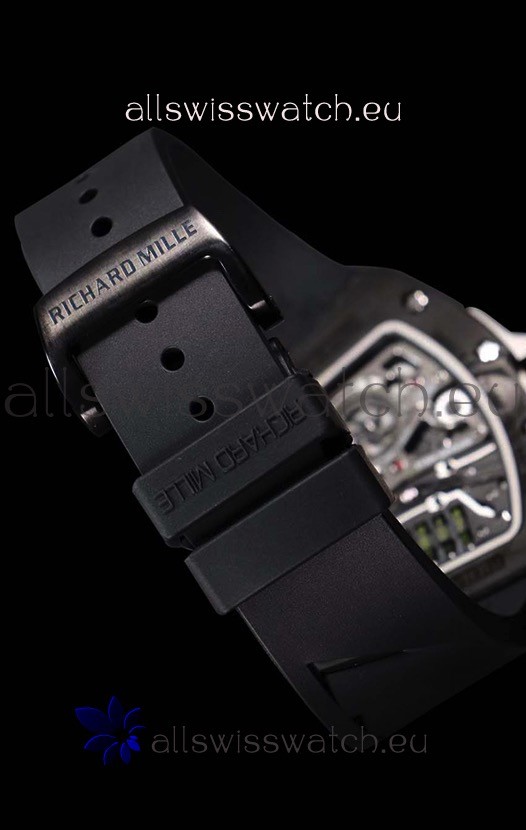 Genuine Black Rubber Strap complete with Richard Mille Markings and Engravings and PVD Coated Folding Clasp
