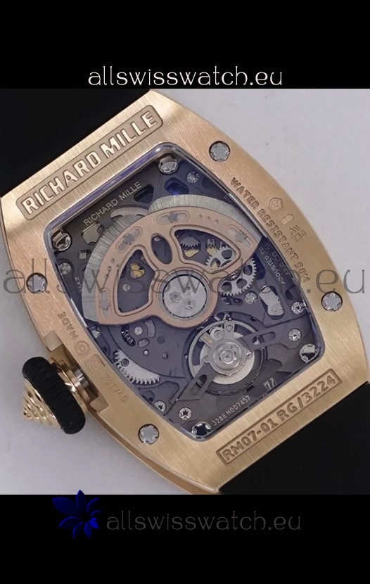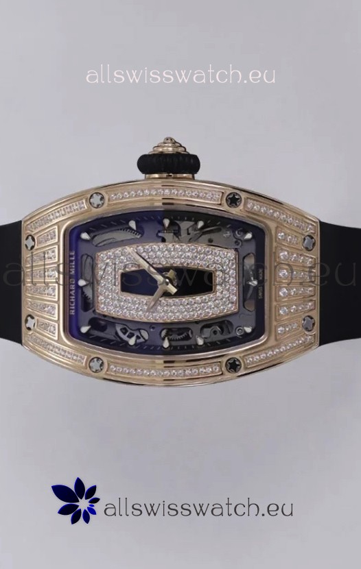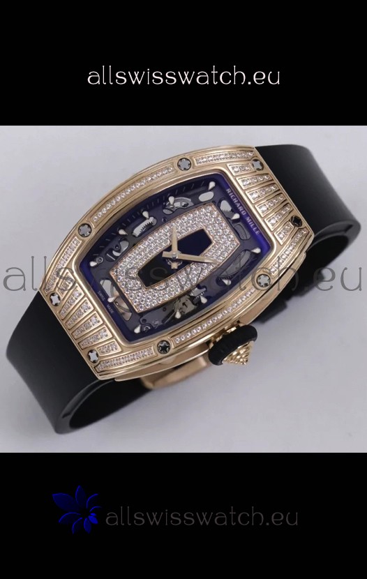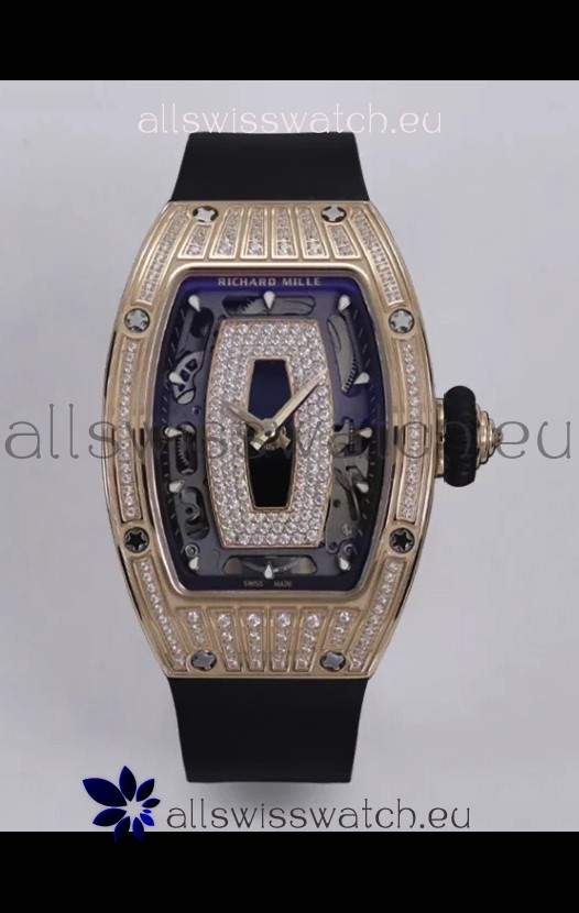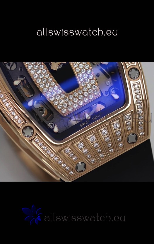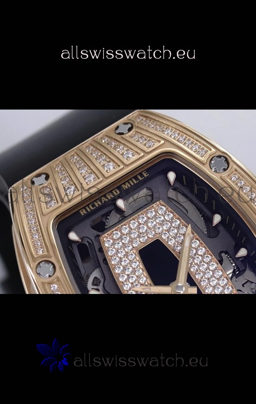 Richard Mille Super Clone RM07-01 Diamonds Paved 904L Rose Gold Casing Automatic Replica Watch