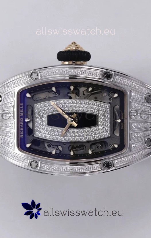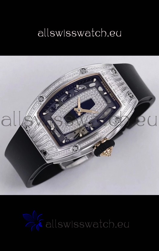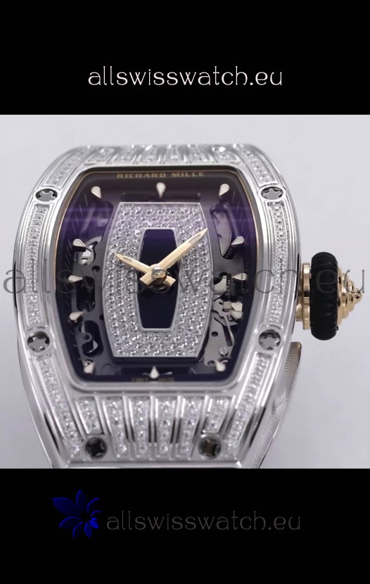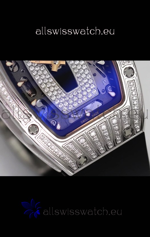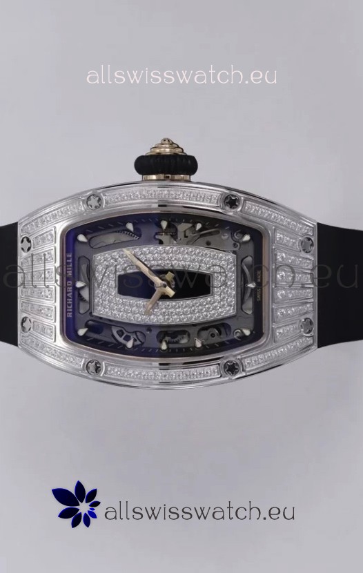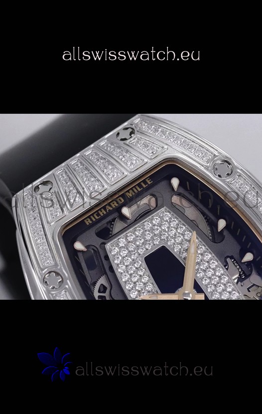 Richard Mille Super Clone RM07-01 Diamonds Paved 904L Steel Casing Automatic Replica Watch