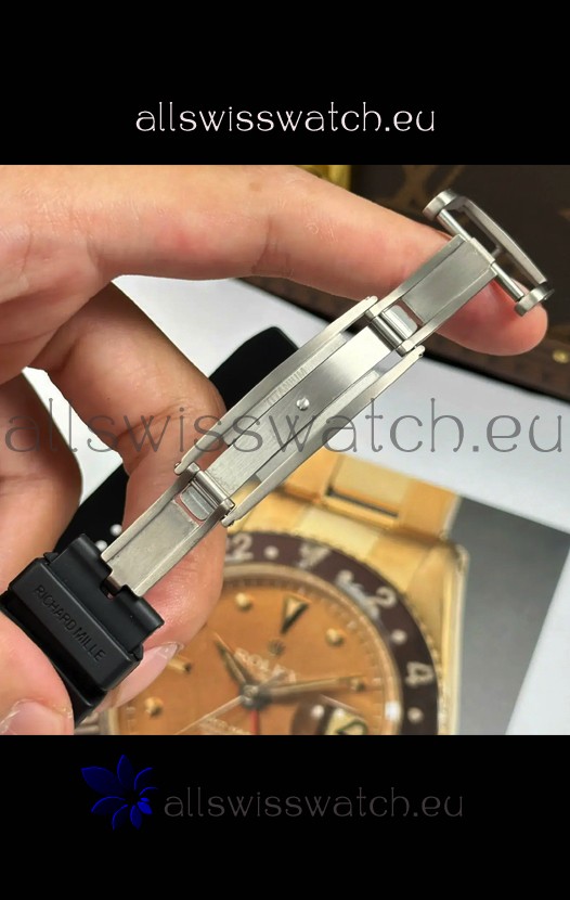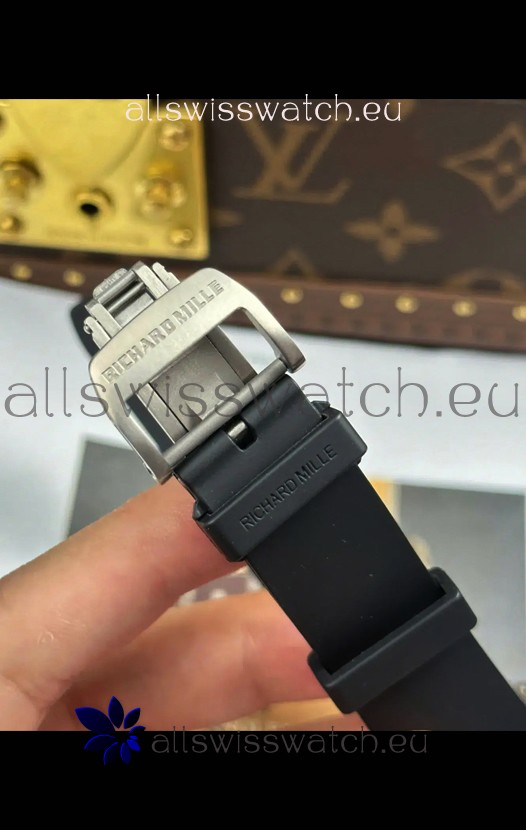 Black Rubber Strap with Folding Clasp with Steel Clasps Complete with Richard Mille Markings and Engravings