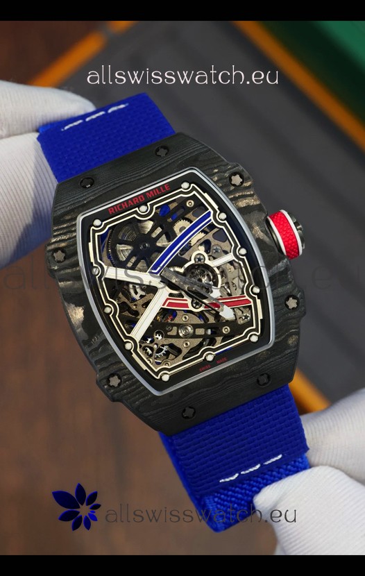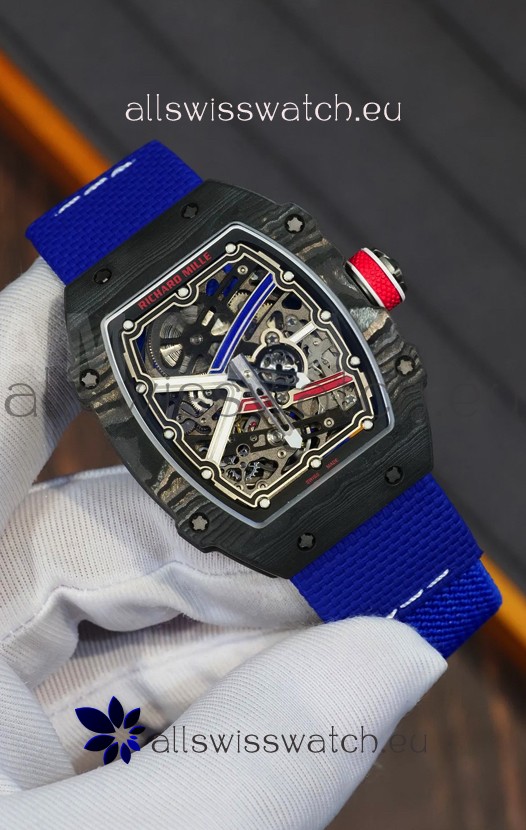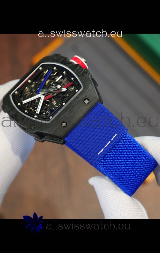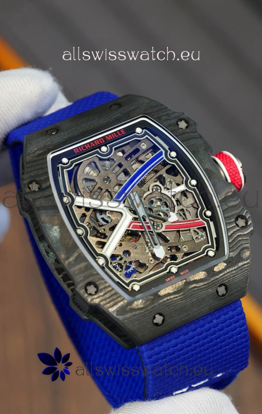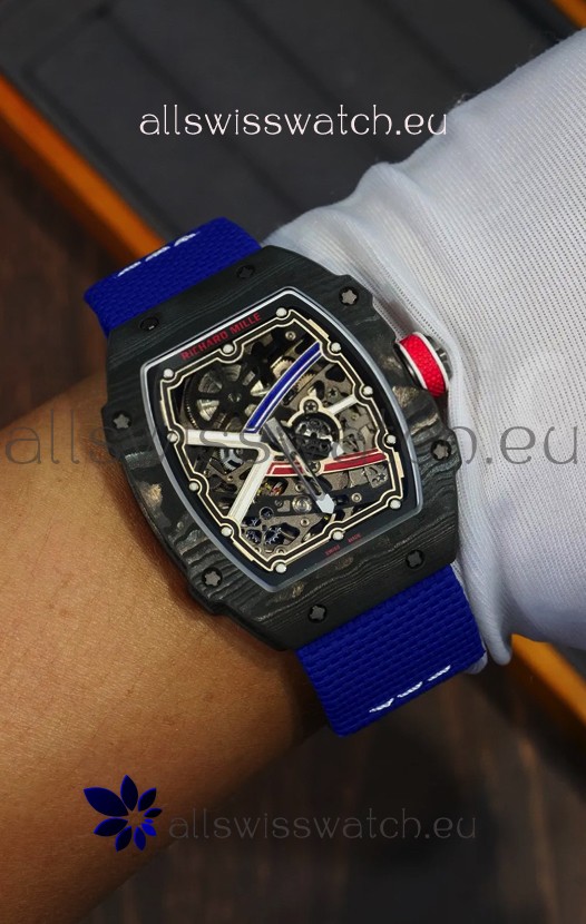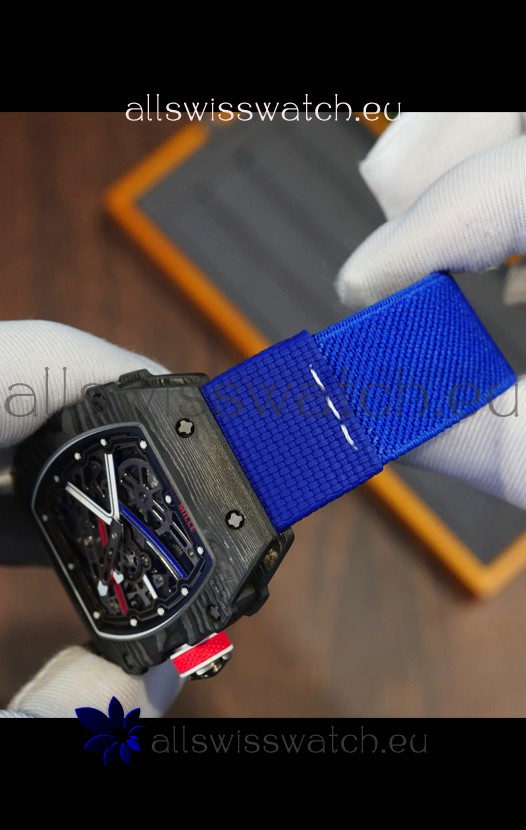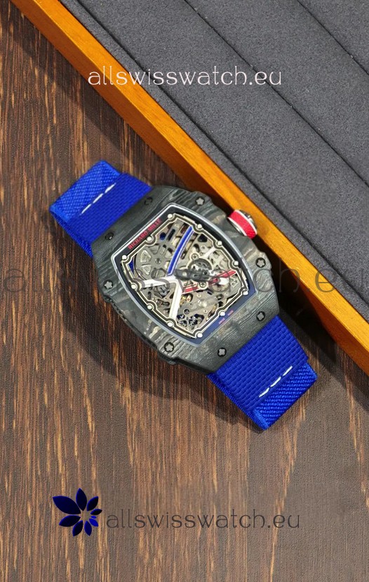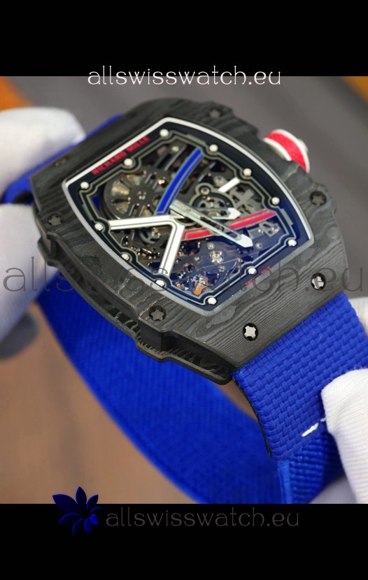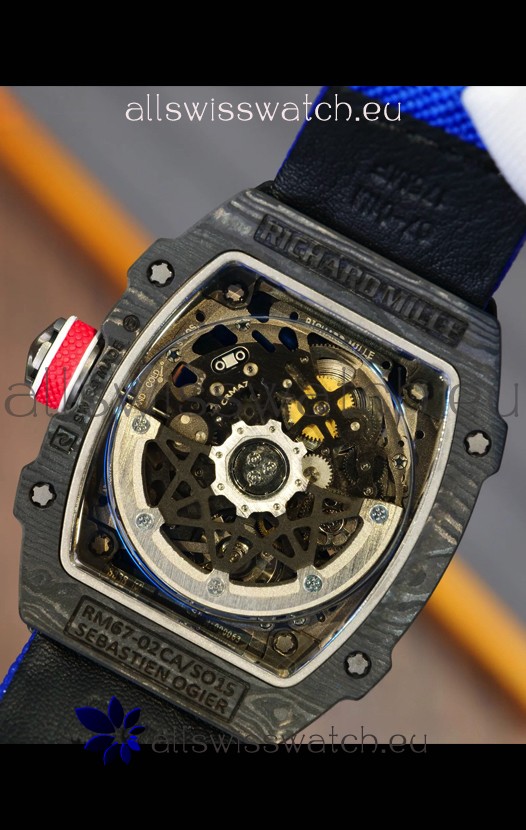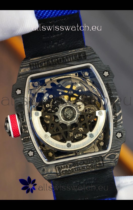 Richard Mille Super Clone RM67-02 Sebastien Ogier Black Carbon TPT 37 Grams Watch Blue Strap