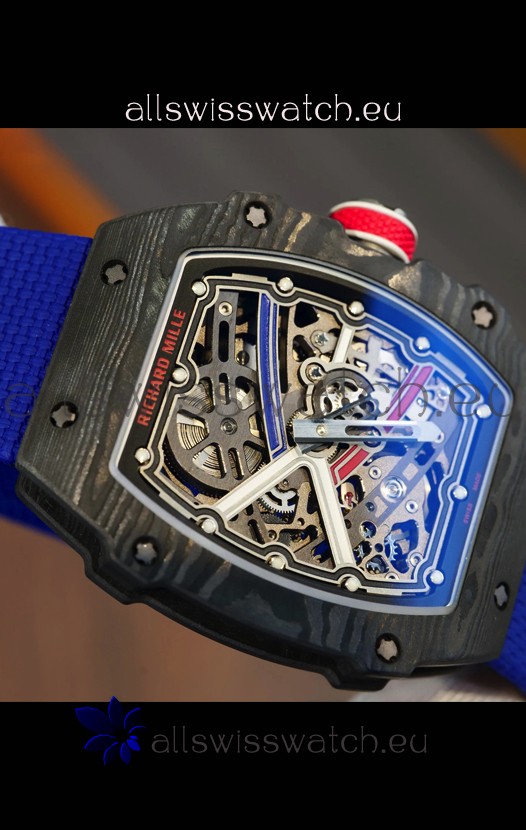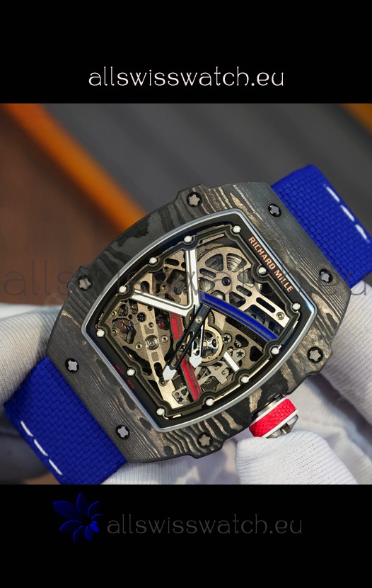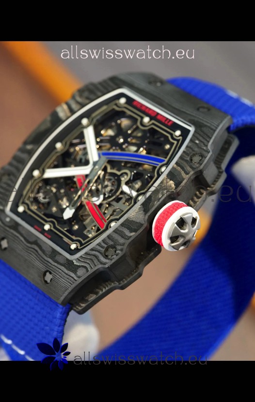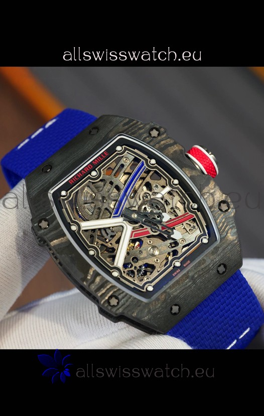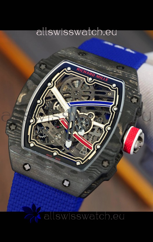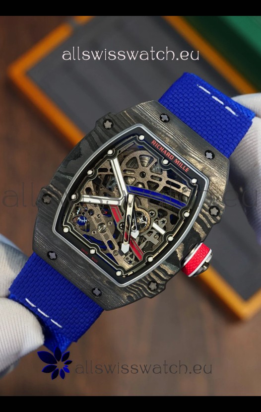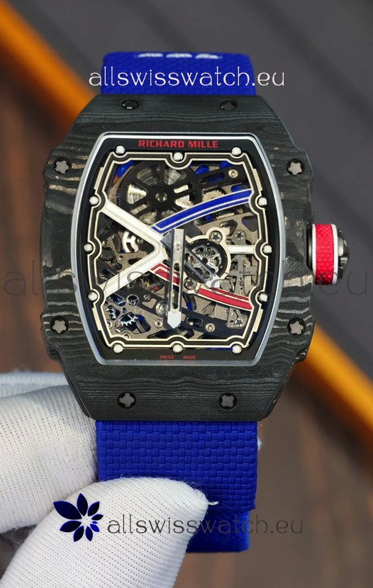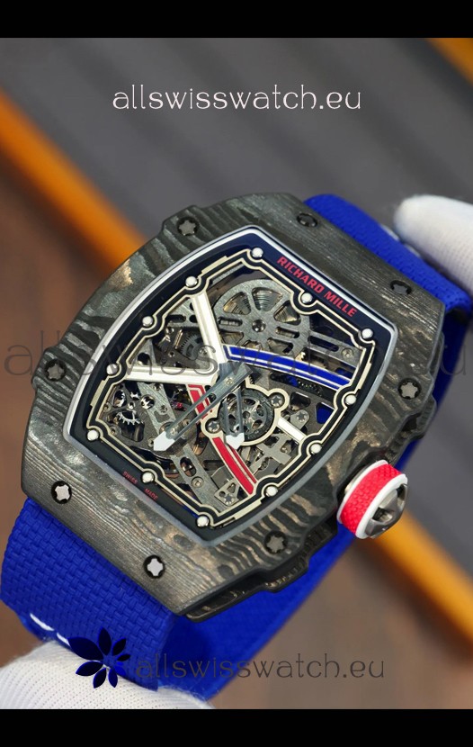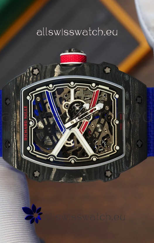 Richard Mille Super Clone RM67-02 Sebastien Ogier Black Carbon TPT 37 Grams Watch Blue Strap