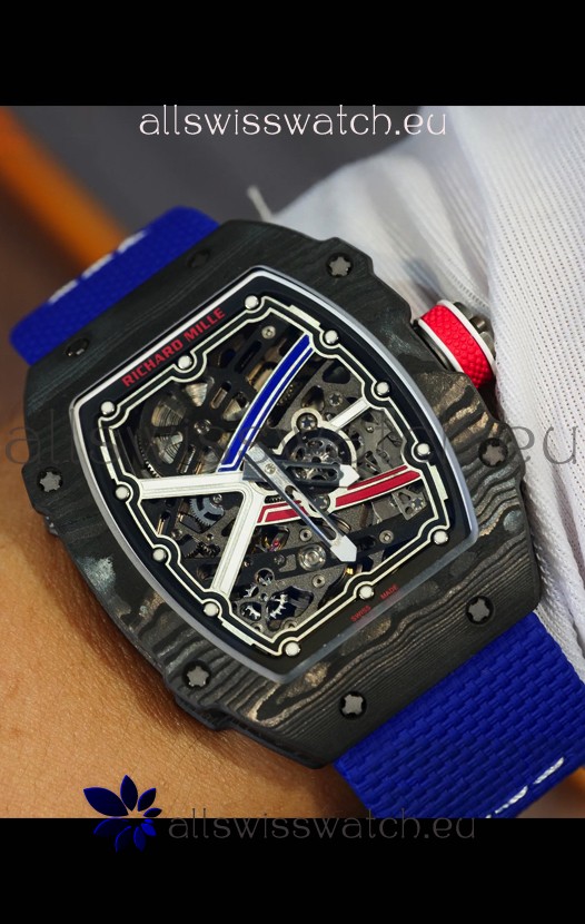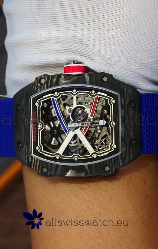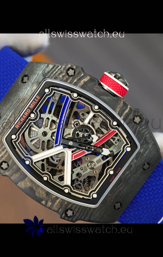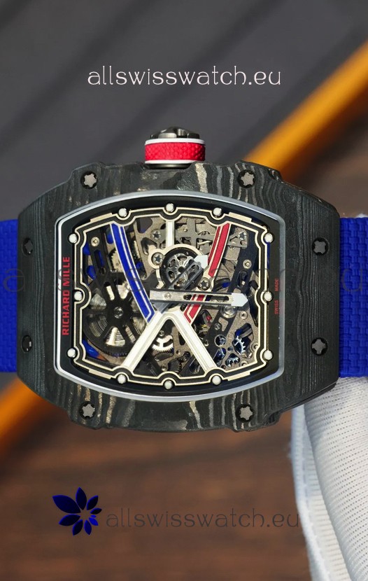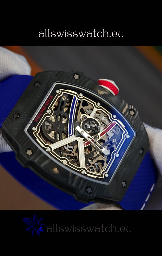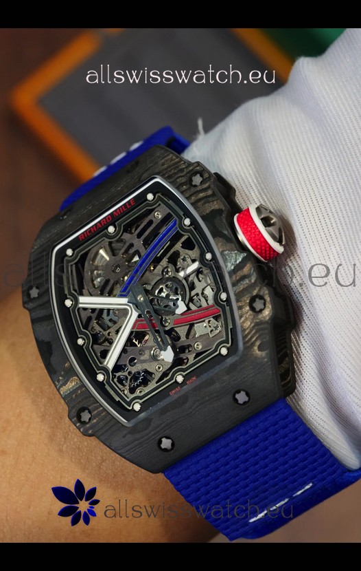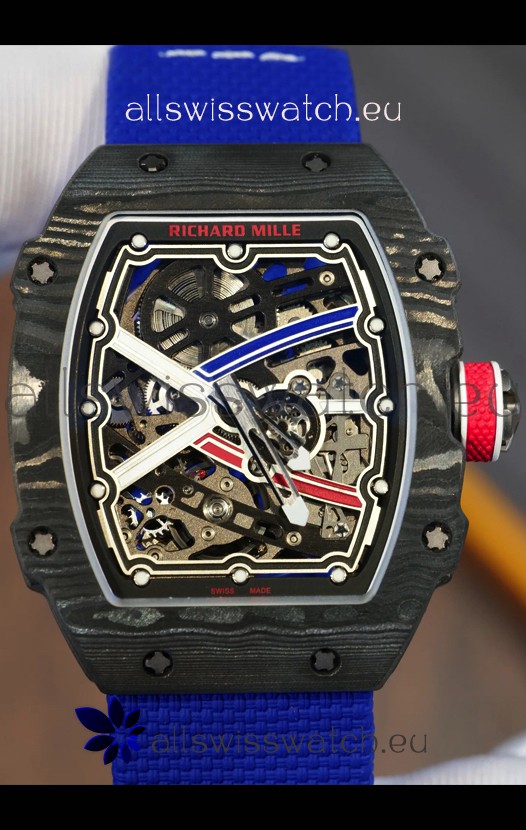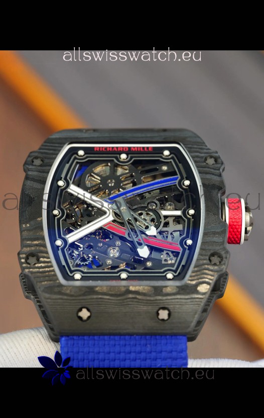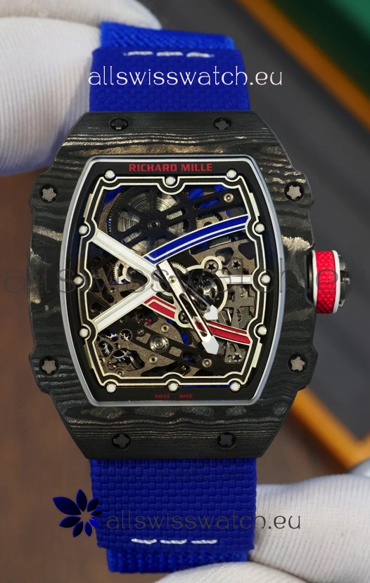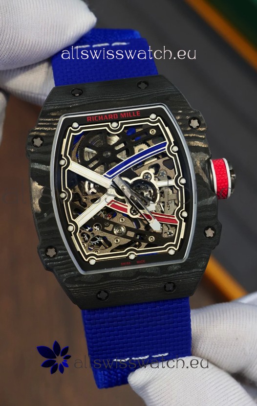 Richard Mille Super Clone RM67-02 Sebastien Ogier Black Carbon TPT 37 Grams Watch Blue Strap