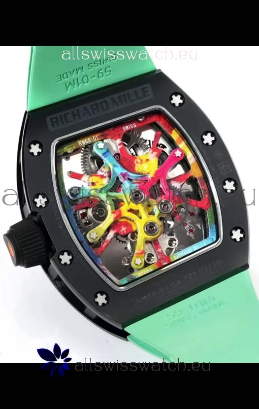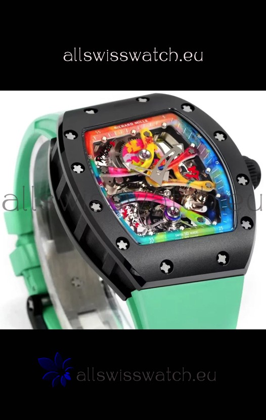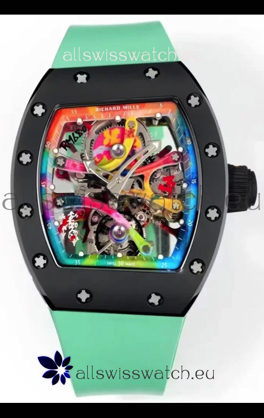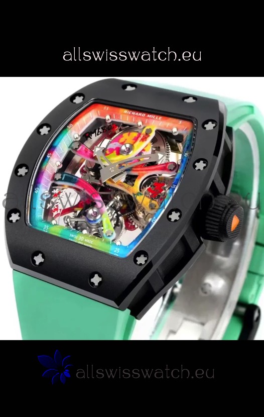 Richard Mille Super Clone RM68-01 Black Ceramic Casing Green Strap Tourbillon Swiss Replica