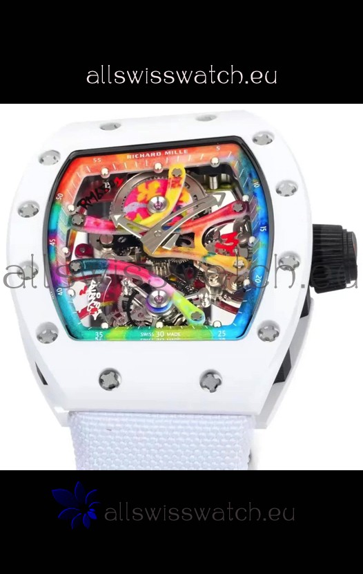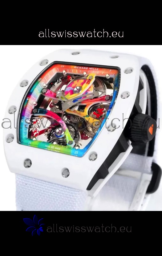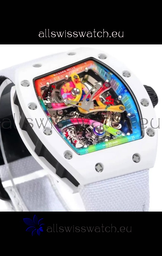 Richard Mille Super Clone RM68-01 White Ceramic Casing Nylon Strap Tourbillon Swiss Replica