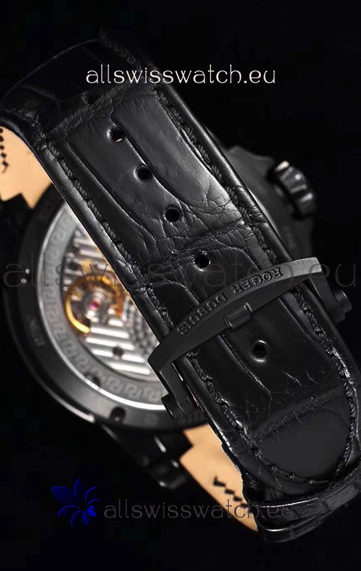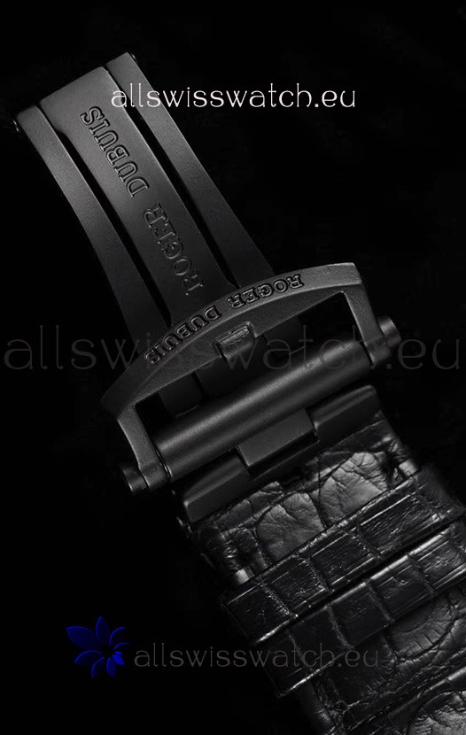 Genuine Leather Strap with DLC Coated Stainless Steel Folding Clasp complete with Roger Dubuis Markings and Engravings