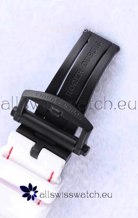 Genuine White Rubber Strap with PVD Coated Stainless Steel Folding Clasp complete with Roger Dubuis Markings and Engravings