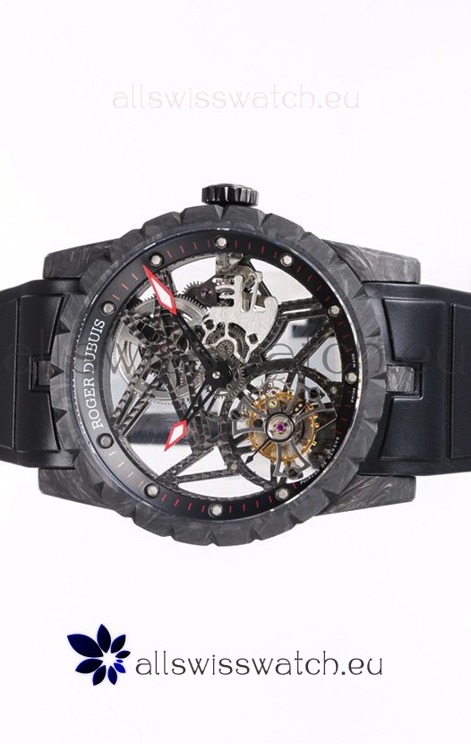 Roger Dubuis Excalibur Spider Flying Tourbillon Skeleton Carbon Casing 1:1 Mirror Swiss Watch