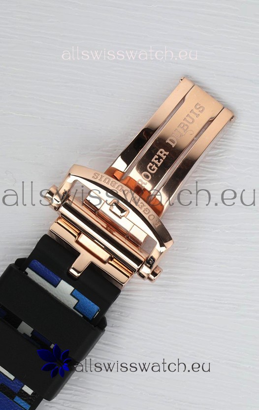 Genuine Rubber Strap with Rose Gold Plated Folding Clasp complete with Roger Dubuis Markings and Engravings