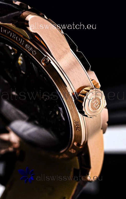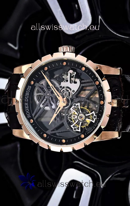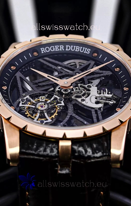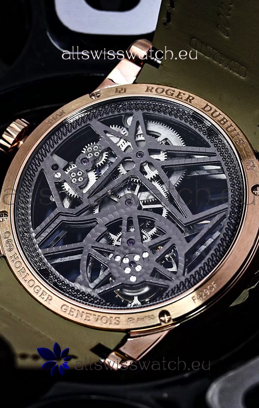 18K Rose Gold Plating on 904L Steel Casing complete with Roger Dubius Markings and Engravings