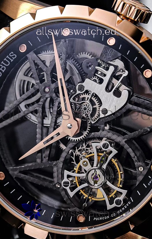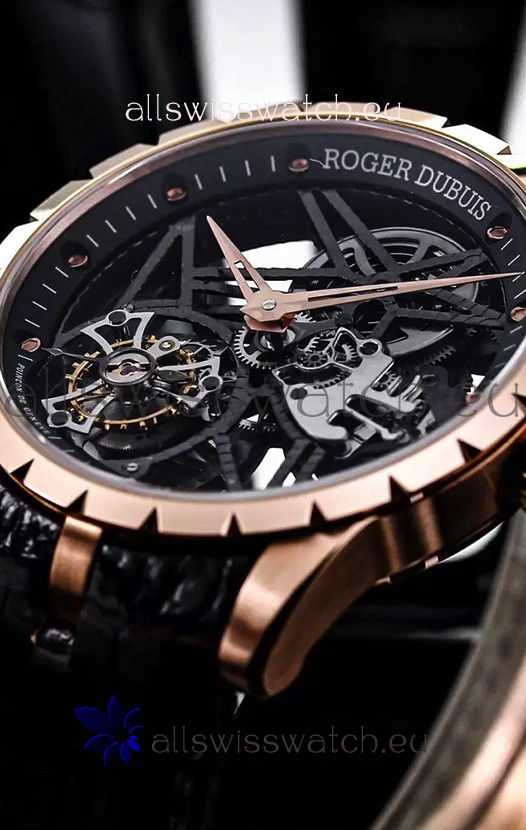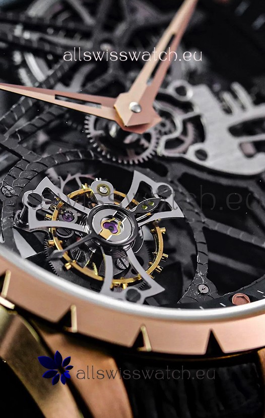 Roger Dubuis Excalibur Spider Flying Tourbillon Skeleton Rose Gold Casing 42MM 1:1 Mirror Swiss Watch