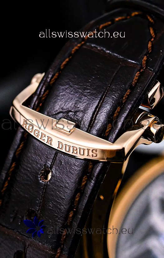 Genuine Rubber Strap with Rose Gold Plated Folding Clasp complete with Roger Dubuis Markings and Engravings
