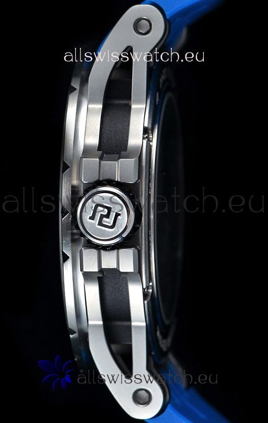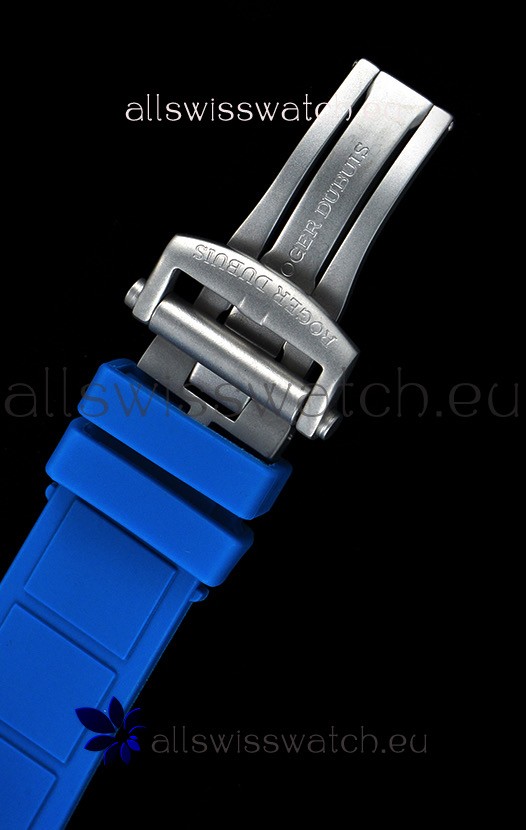 Genuine Blue Rubber Strap with Stainless Steel Folding Clasp complete with Roger Dubuis Markings and Engravings