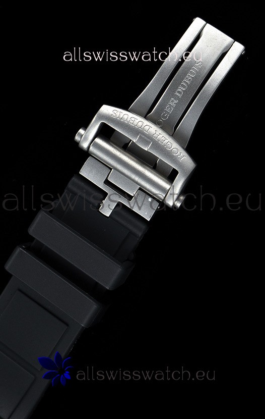 Genuine Black Rubber Strap with Stainless Steel Folding Clasp complete with Roger Dubuis Markings and Engravings