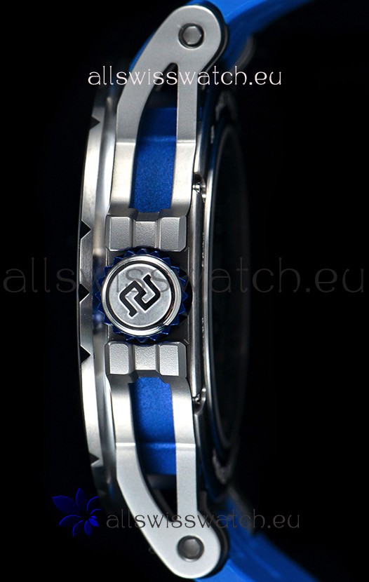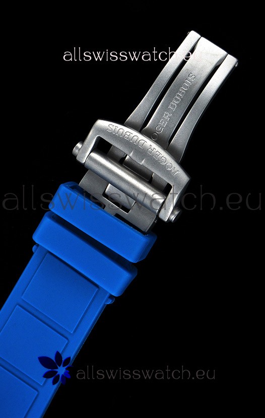 Genuine Blue Rubber Strap with Stainless Steel Folding Clasp complete with Roger Dubuis Markings and Engravings