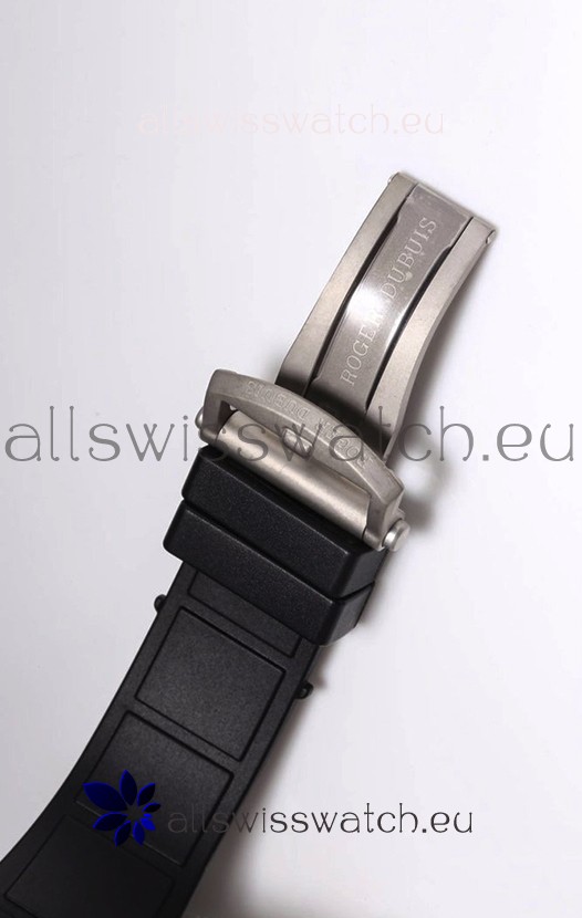 Genuine Black Rubber Strap with Titanium Folding Clasp complete with Roger Dubuis Markings and Engravings