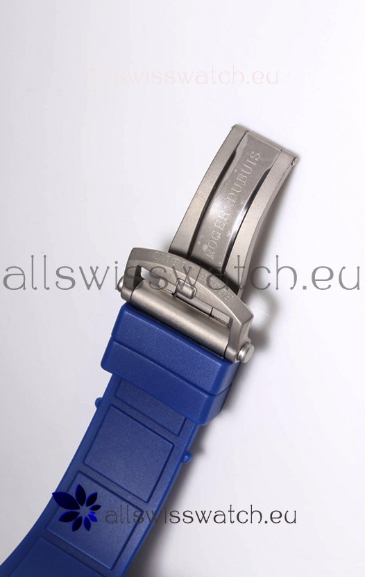 Genuine Blue Rubber Strap with Titanium Folding Clasp complete with Roger Dubuis Markings and Engravings
