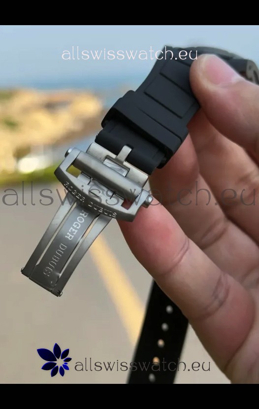 Genuine Black Rubber Strap with Titanium Folding Clasp complete with Roger Dubuis Markings and Engravings