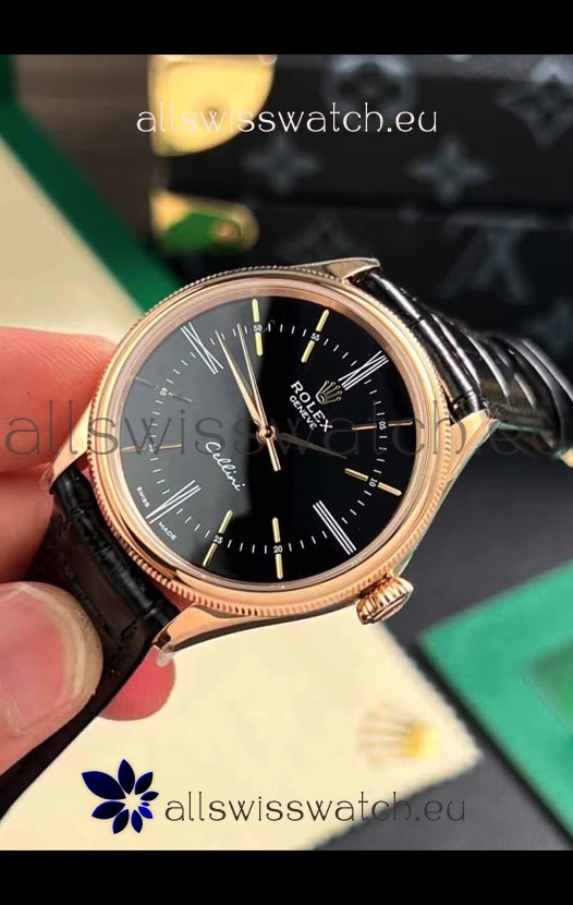 Rolex Cellini Date Ref#50505 Replica 1:1 Mirror Rose Gold Steel Black Dial Watch