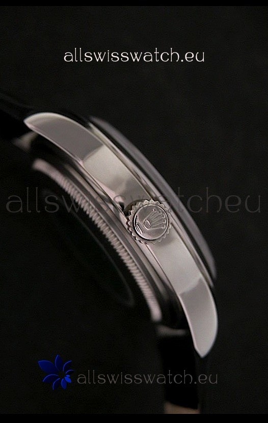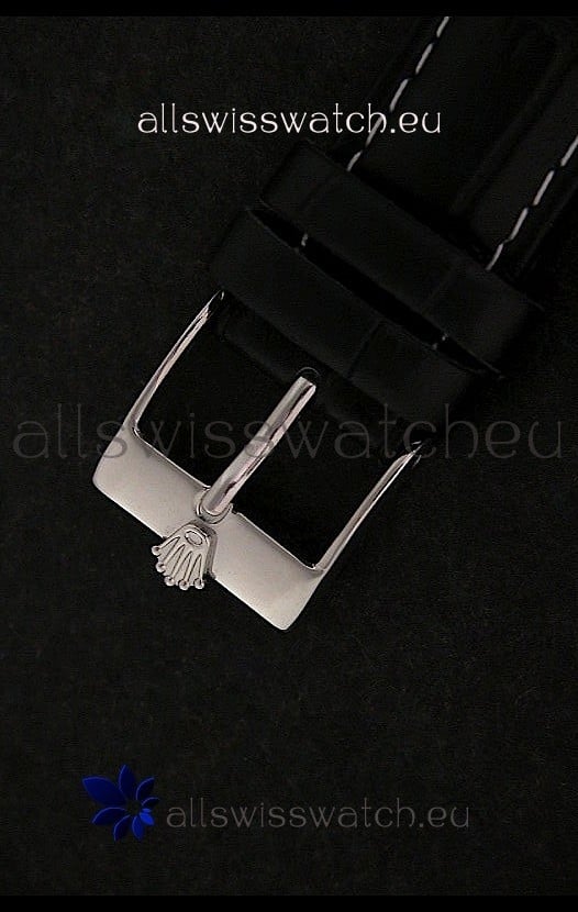Strap: Genuine Black Leather Strap with Rolex Markings and Engravings