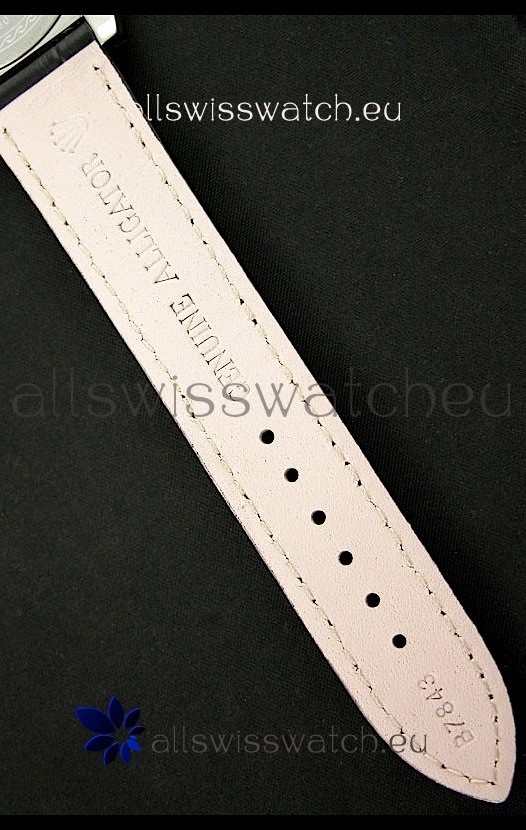 Strap: Black Leather Strap with Insignia Tang Buckle