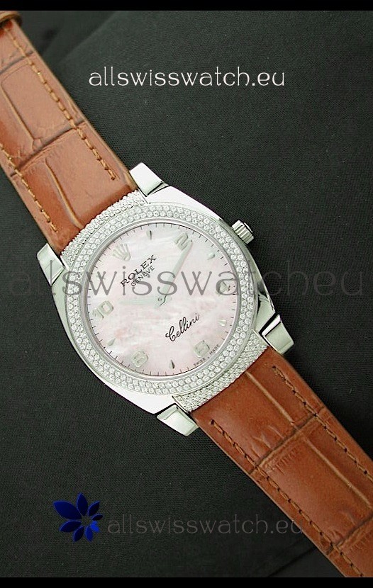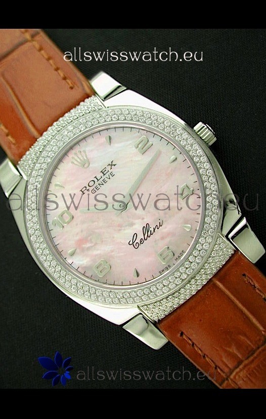 Rolex Cellini Japanese Replica Watch in Mother of Pearl Pink Dial