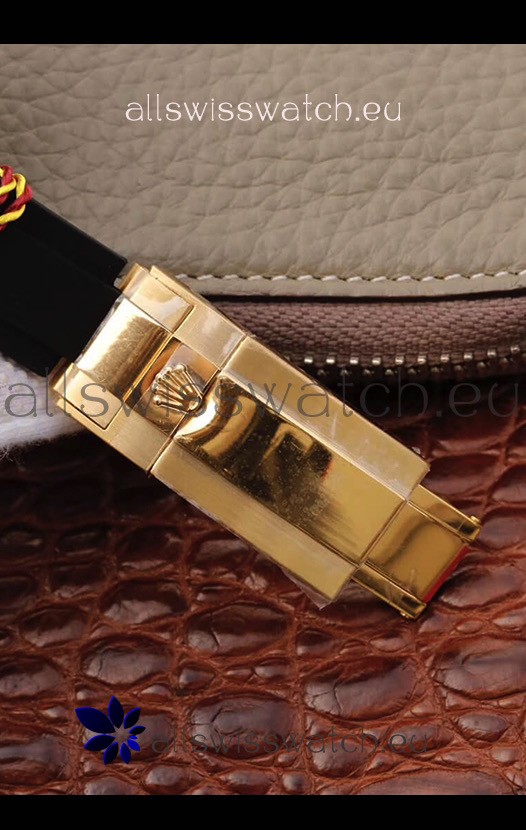 18K Yellow Gold Plating on 904 Solid Stainless Case with Rolex Markings and Engravings like the Authentic.