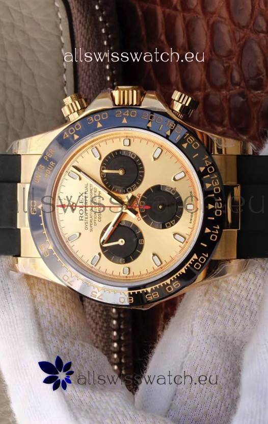 The Best Rolex Daytona Model Replicated up to Date. The First Rolex model to adopt a 904L Steel on Casing and Strap which is the same steel used by Rolex. Compared with an Original Side by Side and there were NO Differences Whatsoever. Complete list of details have been stated below and you will see that tremendous amount of detaiing and work has been put into this edition.
