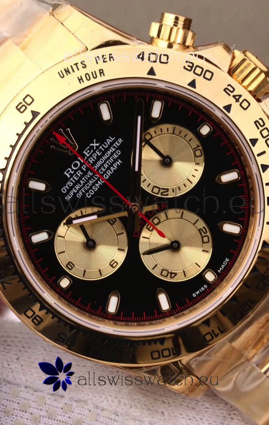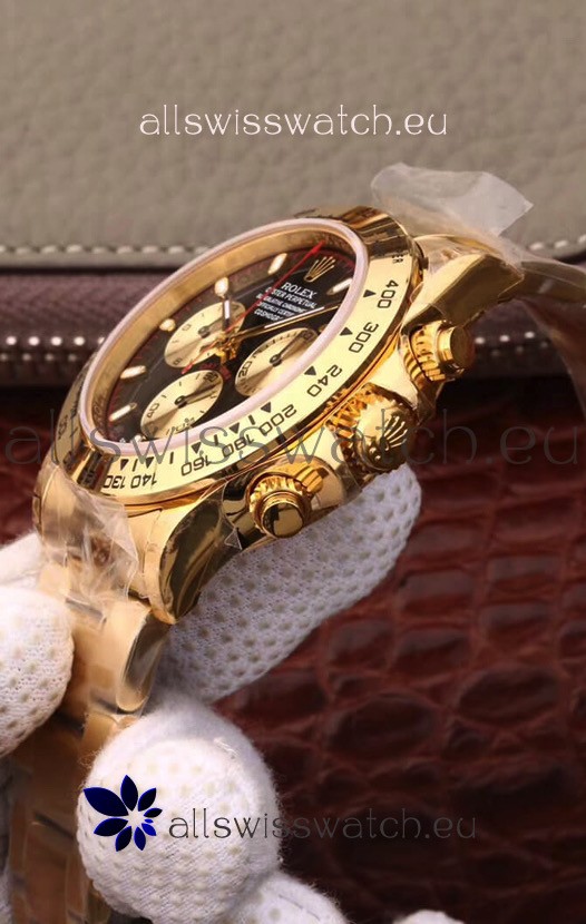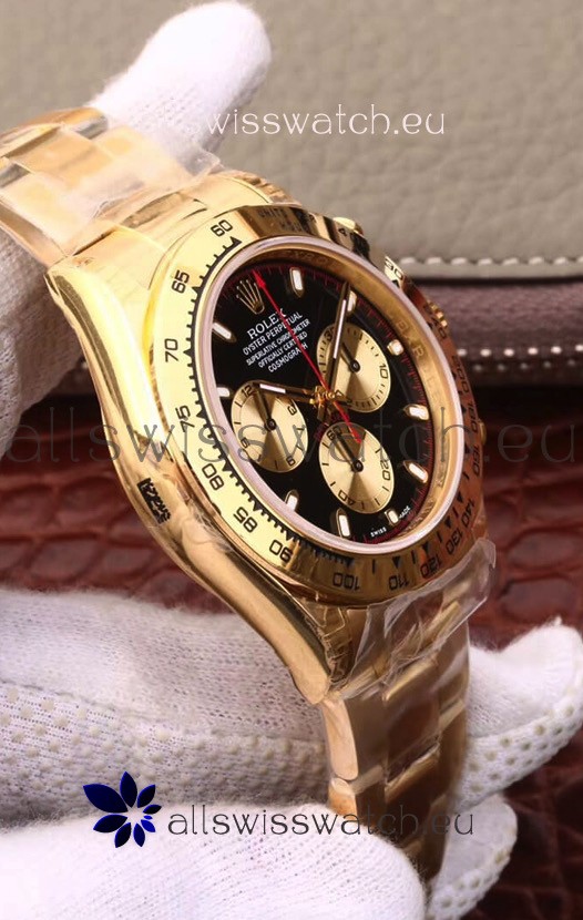 The Best Rolex Daytona Model Replicated up to Date. The First Rolex model to adopt a 904L Steel on Casing and Strap which is the same steel used by Rolex. Compared with an Original Side by Side and there were NO Differences Whatsoever. Complete list of details have been stated below and you will see that tremendous amount of detaiing and work has been put into this edition.